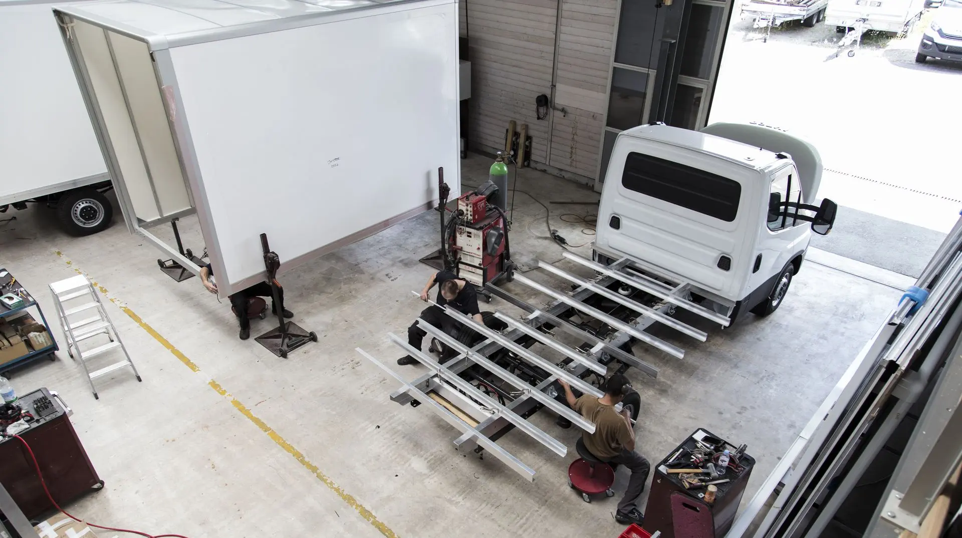 Wir bauen für Sie Kofferaufbauten, Alu-Ladebrücken, Anhänger oder Kipper.